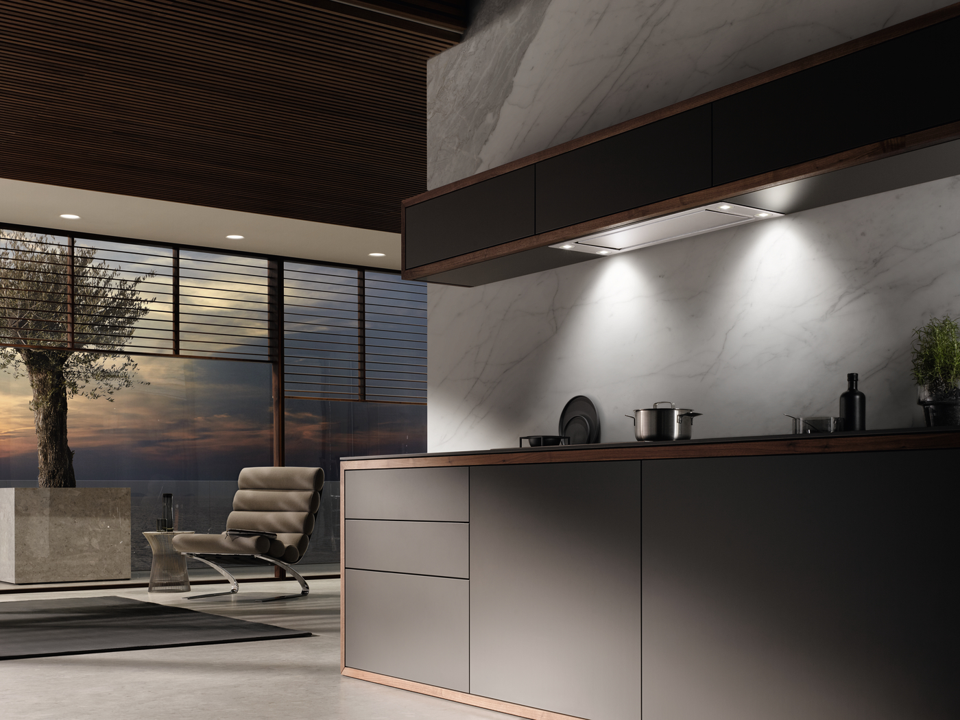 Extractor unit with energy-efficient LED lighting and light-touch switches for easy use.