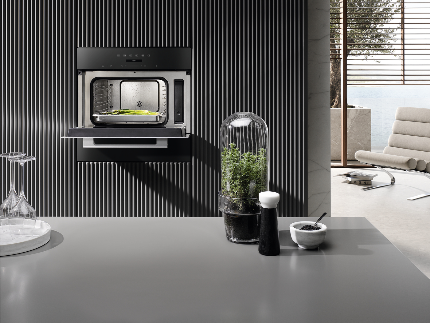 Built-in steam oven for healthy cooking with automatic programmes and networking.