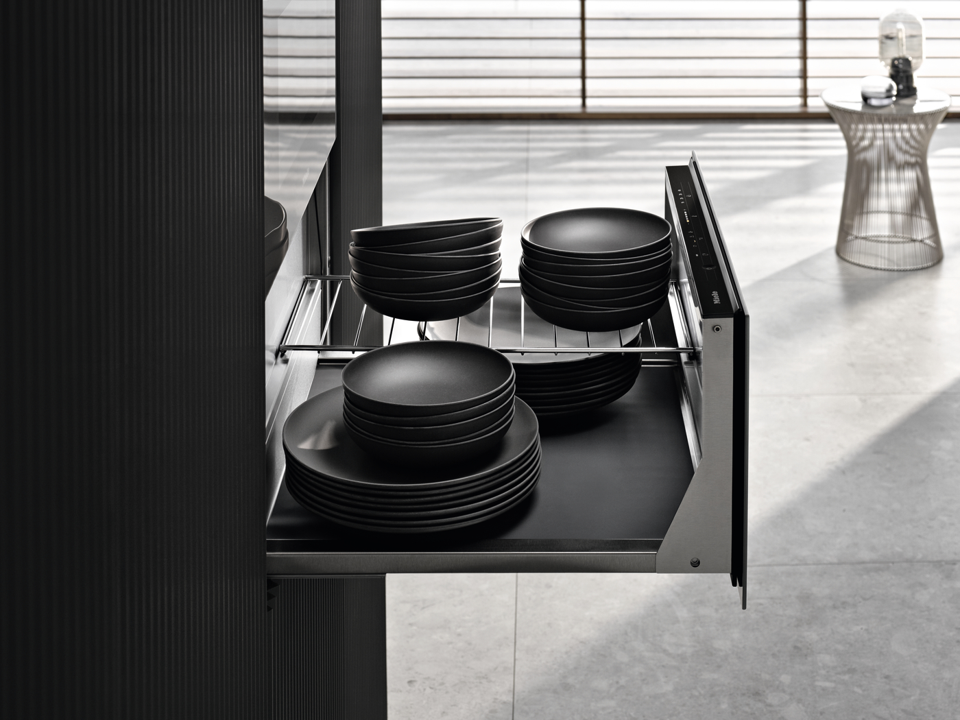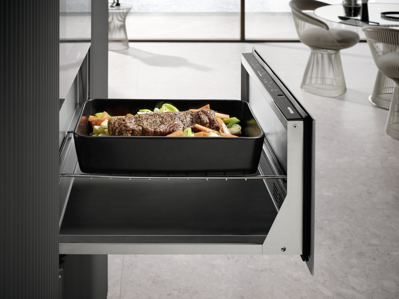 29 cm high handleless Gourmet warming drawer for preheating crockery, keeping food warm and low temperature cooking.