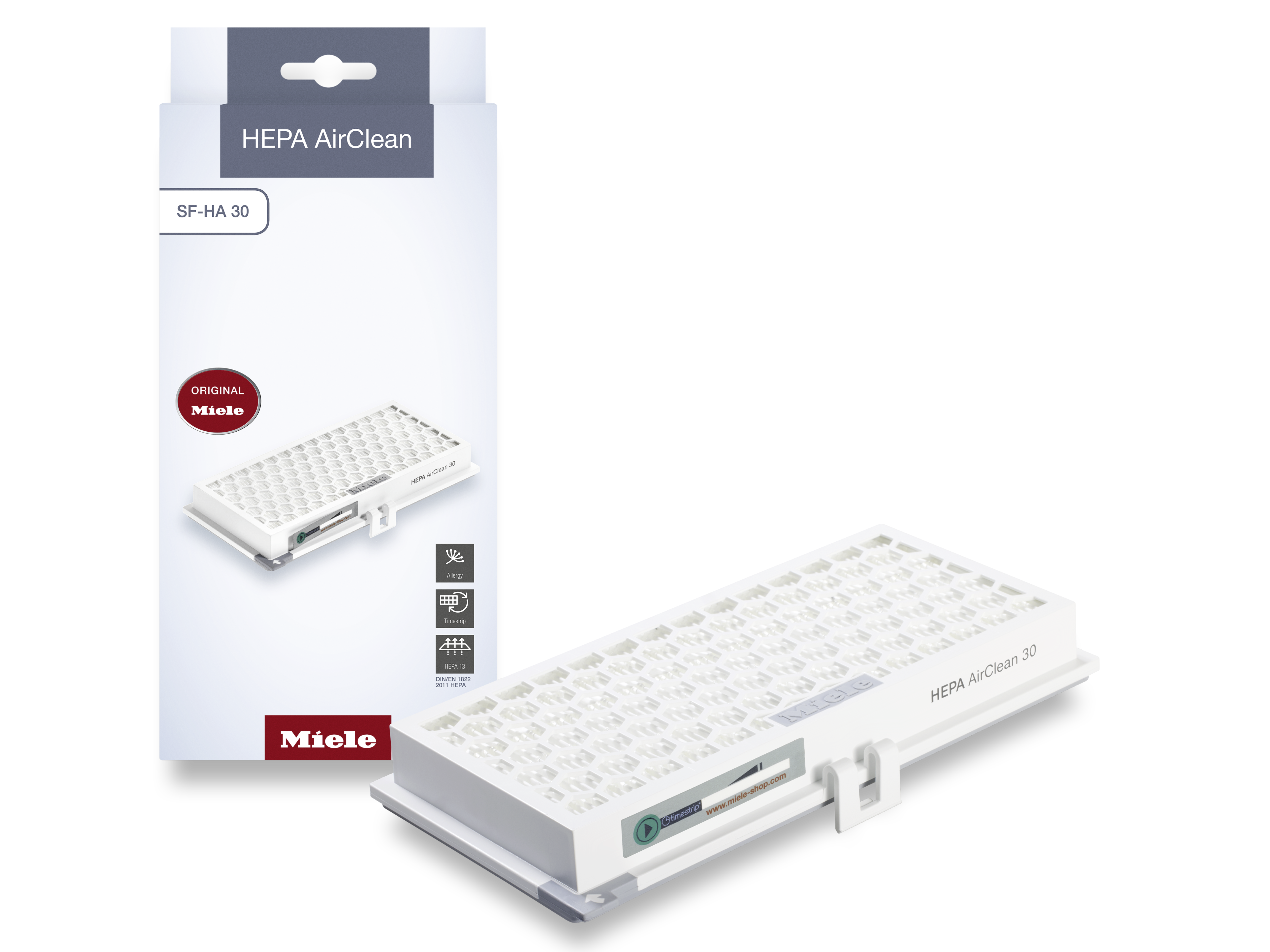 HEPA AirClean Filter with TimeStrip® safely traps fine dust and allergens.